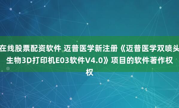 在线股票配资软件 迈普医学新注册《迈普医学双喷头生物3D打印