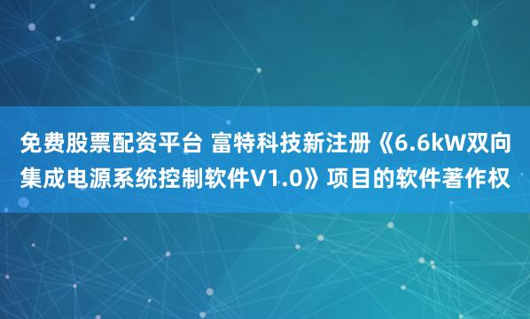 免费股票配资平台 富特科技新注册《6.6kW双向集成电源系统