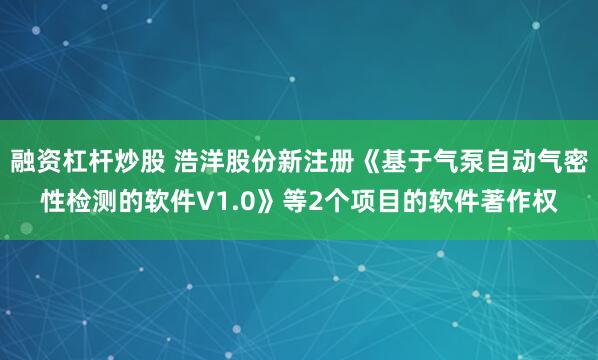 融资杠杆炒股 浩洋股份新注册《基于气泵自动气密性检测的软件V
